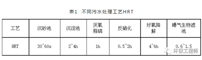 HRT即平均水力停留時(shí)間,指待處理污水在反應(yīng)器內(nèi)的平均停留時(shí)間,也就是污水與生物反應(yīng)器內(nèi)微生物作用的平均反應(yīng)時(shí)間,為反應(yīng)器有效容積與進(jìn)水量的比值。對于生物處理,HRT要符合相應(yīng)工藝要求,否則水力停留時(shí)間不足,生化反應(yīng)不完全,處理程度較弱;水力停留時(shí)間過長則會導(dǎo)致系統(tǒng)污泥老化。
