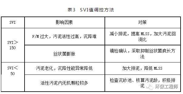 SVI主要反映污泥的松散程度,當(dāng)MLSS很高時(shí),僅用SV判斷污泥沉降性是不準(zhǔn)確的,必須結(jié)合SVI。對SVI的調(diào)控主要通過對MLSS的調(diào)整。