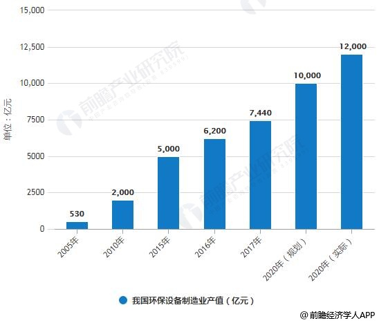 2017年10月,工業和信息化部發布《關于加快發展環境保護裝備制造業的指導意見》,提出到2020年,水處理設備環境保護裝備制造業產值應達到1萬億元。根據我國環保裝備產業的發展現狀,預計2019年達到產業萬億元目標,2020年超過1.2萬億元。行業發展速度超出規劃預期。