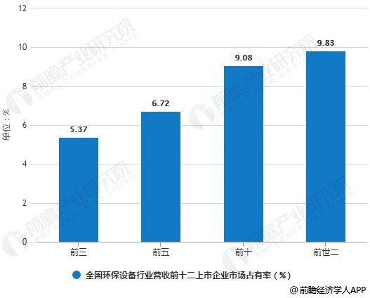 2017年全國環保設備行業營收前十二上市企業市場占有率統計情況